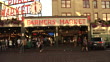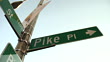 CU, LA, TD, MS, Street name sign and Farmers market, Seattle, Washington, USA - Vídeo de stock HD