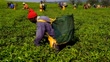 Kenya, Kericho county, Kericho, tea picker picking tea leaves