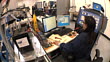 MS Technician using multiple computer screens while testing prototype lithium ion battery used to power electric automobile / Troy, Michigan, USA - Vídeo de stock HD