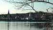 Tres las iglesias en Mahone Bay, Nova Scotia - Vídeo de stock HD