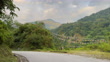 Shot from the cars perspective of a winding mountain forest and jungle road common throughout Bhutan.