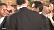 2009 GOLDEN GLOBES AWARDS RED CARPET: ZI to MCU & pan with Marc Anthony & Jennifer Lopez as they walk in crowd waving to press as they call their names