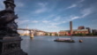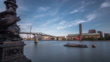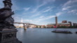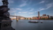 Under a rapidly moving sky tourists and commuters flow quickly over the Millennium Bridge spanning the River Thames with the Tate Modern Gallery on the South Bank of the river - Vídeo de stock 4K
