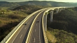 HD1080p: Aerial shot of vehicles crossing a viaduct at the late afternoon sun. Crni Kal. Slovenia. Europe