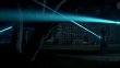 WIDE ANGLE OF CAMPUS QUAD WITH SCHOOL BUILDING STATUE AND SURROUNDING GRASS AREA. INTERIOR AND EXTERIOR LIGHTS FADE AND TURN OFF. BLUE LASER BEAMS REFLECT OFF VARIOUS POINTS