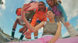 Toma de gran angular de un grupo de amigos de la Generación Z usando un teléfono inteligente juntos. - Vídeo de stock 4K