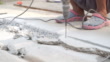 Worker drill a cement floor for renovate a house
