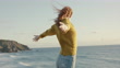 Young woman enjoying wind on sea cliff - Vídeo de stock 4K
