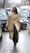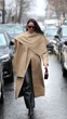PARIS, FRANCE - MARCH 2: (SLOW-MO) Zina Charkoplia wears brown cape coat, red bag, leather pants in black outside Hermes during the Womenswear Fall/Winter 2024/2025 as part of Paris Fashion Week on March 2, 2024 in Paris, France. (Footage by Christian Vierig/Getty Images)