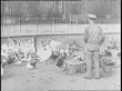Zookeeper feeds birds / monkey walks on wire and in water / pelican catches bread / group of monkeys sit and play on a line at Memphis Zoo / monkeys play in water / monkeys groom each other.